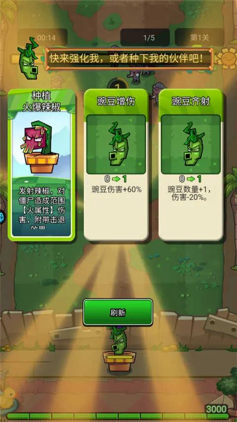 2、击败僵尸有几率获得阳光,收集阳光可以帮助吧在局中升级获得额外的属性加成。