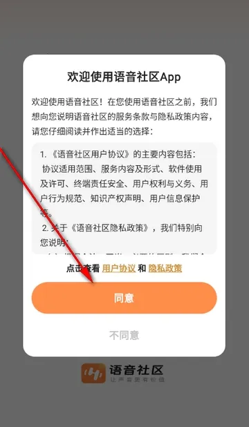 1、打开语音社区app,点击同意隐私政策
