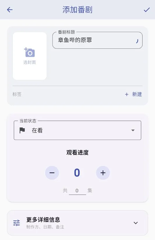 可为每部番剧添加个人评分、短评或标签,如催泪神作、补番中等。