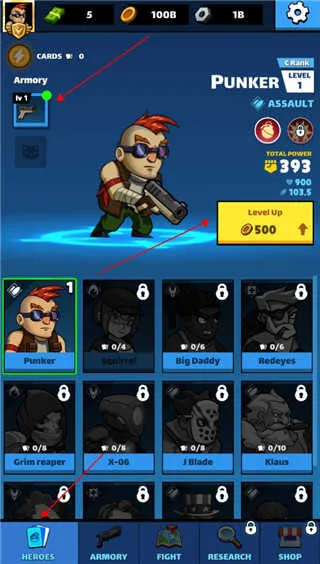 4.击杀敌人后会掉落金币,我们可以点击角色来对其进行升级,还可以点击右方使用道具