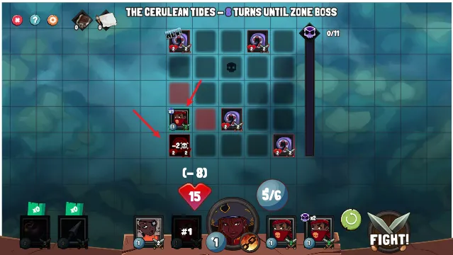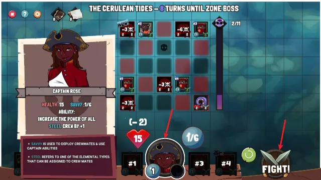 4. 独特的战斗体验:拖动角色卡牌放置格子,点击船长释放技能开始战斗,角色自动攻击敌人,清理敌人后刷新更多,攻击宝箱可获额外奖励,新角色卡牌加入需挑选替换。