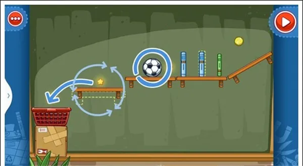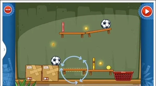 我们只需要将两个木箱重叠放在中间空白处,就可以让球飞过去,获得星星。